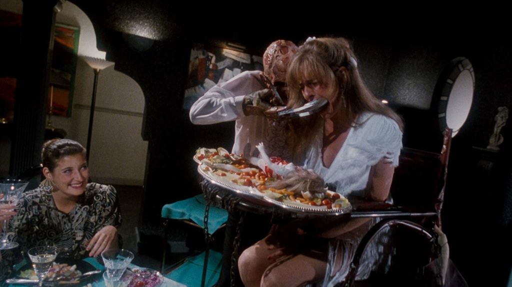 De plus, L’enfant du cauchemar revient sur la question de maternité / paternité et héritage, puisque Freddy Krueger s’invite dans les rêves de l’embryon. Le croque-mitaine semble vouloir revenir avec cet enfant, afin de l’emmener dans son monde et c’est avec tout ça que la thématique du viol se fait omniprésente durant ce long métrage.