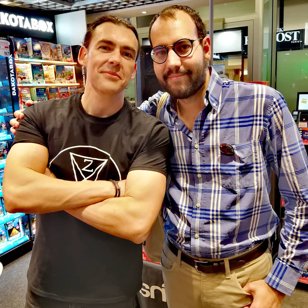 Au cours de ce mois de main, j’ai eu la chance et l’immense plaisir de rencontrer Cédric Sire pour la première fois. J’ai eu l’occasion de faire dédicacer Vindicta, le recueil de nouvelles « Écouter le noir » et de parler avec lui. C’est une très chouette personne, ouverte. Nous avons échangé sur mon roman, mais aussi sur des conseils d’écriture, parlé maison d’éditions et un peu de Vindicta, aussi. De tous les auteurs que j’ai rencontré jusqu’à présent (4), ça a été ma meilleure rencontre, bien qu’elle ait été trop brève (5 minutes à tout casser). Mais j’ai pu découvrir l’homme derrière les livres, et ce qui me frappe le plus souvent derrière l’intensité, la terreur, la haine, l’hémoglobine, la rage que peuvent contenir certains romans, c’est de voir au combien ces auteurs sont de vraies petites crèmes. Plus sérieusement, ils sont souvent très gentils et c’est fort plaisant de pouvoir échanger avec eux.