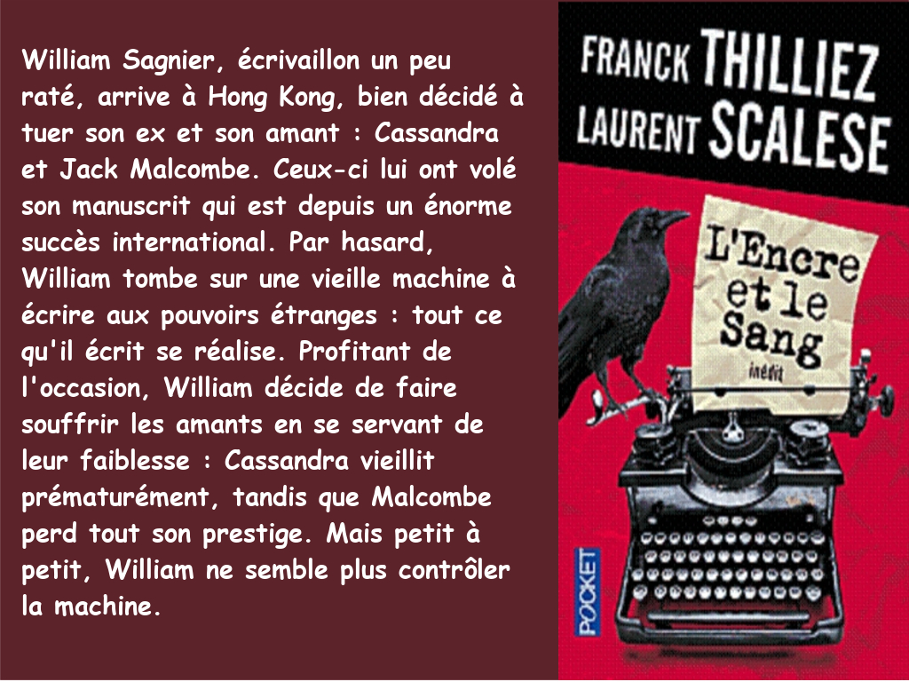 Cela avait été mon premier Thilliez. Et je n’ai pas encore lu d’autres Scalèse. J’avais beaucoup aimé cette nouvelle, tant dans sa conception que dans son écriture. On est pris dans l’histoire de cet écrivain, qui me rappelle certaines romans récents. L’histoire est somme toute classique, mais machiavélique. Ça se lit vite, et c’est bon !
