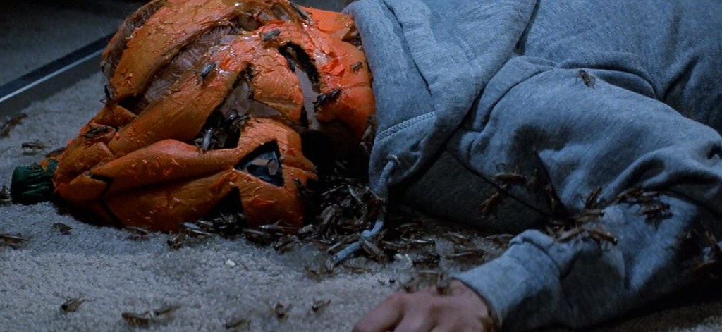 Nous ne sommes plus du tout dans le slasher, mais Tommy Lee Wallace, John Carpenter et Debrah Hill décide de revenir à l’origine païenne de cette fête d’Halloween et de critiquer la société de consommation qui l’a récupéré, dépossédé de toute sa symbolique, afin de pouvoir en faire une fête commerciale. Ce troisième opus ose quelques fulgurances graphiques, notamment avec cette scène des doigts dans les yeux ou encore celle de la mort d’un enfant (ce qui est assez rare au cinéma).
