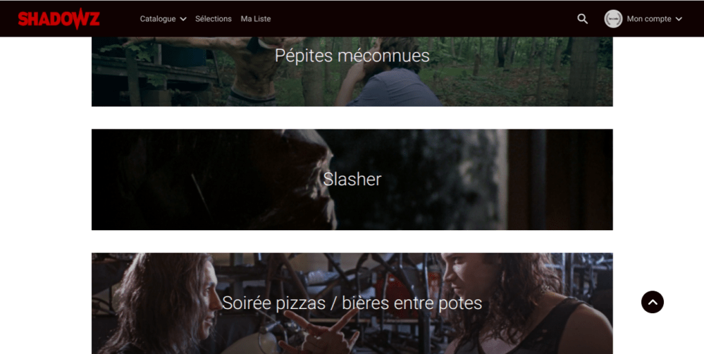 Shadowz, c’est un peu la caverne d’ali baba du genre et l’amateur qui est en moi ne sait jamais vraiment où donner de la tête. La tentation est bien trop grande et c’est avec l’œil brillant que l’on navigue de catégorie en catégorie. C’est tout simple Shadowz me replonge dans mon enfance où j’allais chaque mardi au vidéo-club pour choisir les trois VHS de la semaine (bon, ce n’était pas de l’horreur, mais vous voyez le principe). On déambule sur cette plateforme, on regarde les affiches des films, certaines accrochent à la rétine et on a l’impression de dégoter quelques belles perles, et qui plus est en HD.