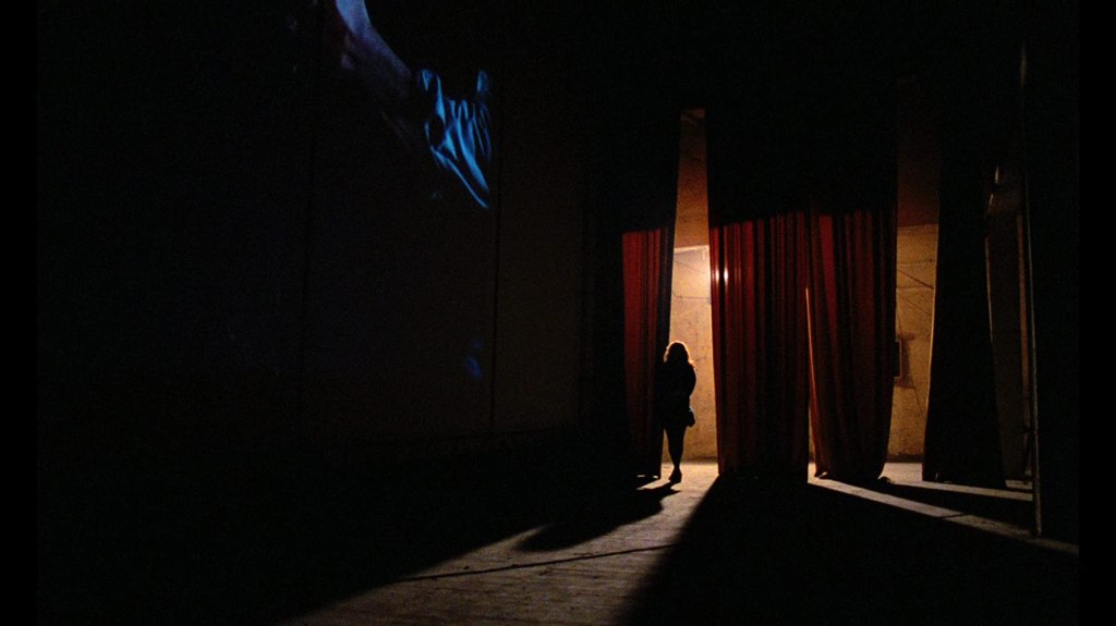 Démons, c’est aussi une folie visuelle, technique et de situations, puisque Bava ne résiste pas à l’idée d’aller toujours plus loin dans l’exagération de ses scènes délirantes. Ce film est un bijou de l’excès, qu’il s’agisse des moments gore ou dans le choix de certaines séquences complètement folle (comme la joute sur moto-cross sur le son Heavy Metal de Accept). Qu’on se le dise, il y a du génie derrière ce film et ce n’est pas le décor et les effets pratiques qui vont nous faire dire le contraire. Il est intéressant de ressentir la touche de Dario Argento, ne serait-ce que dans le choix du décor de cette salle de cinéma, qui permet d’offrir une multitude de couleurs flamboyantes, d’un vaste endroit angoissant, proche de l’école de danse de Suspiria. Il y a une réelle osmose entre les deux et cela se ressent sur le produit final.