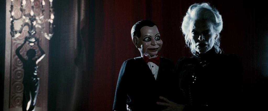 Et c’est bien sur cet aspect que Dead Silence a le potentiel pour faire trembler les plus téméraires d’entre nous. En véritable antithèse de la poupée Chucky, James Wan joue alors sur un look rétro pour augmenter cette sensation désagréable que l’on peut avoir en regardant ce genre d’objet. La figure inanimée prend alors toute la place dans le cadre, surtout lorsque le cinéaste s’amuse à nous effrayer avec les mouvements de leurs yeux ou encore dans les mouvements labiaux. Wan développe alors une nouvelle mythologie se basant sur la double personnalité d’une figure en bois qui prend vie grâce à son manipulateur. Le malaise est palpable et celui-ci explosera dans une dernière partie où l’angoisse deviendra le moteur premier.