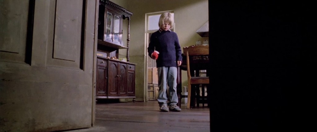 Si le sujet de la maison hantée a été maintes fois abordé au cinéma, le réalisateur et auteur s’imprègne de ce courant pour nous offrir un moment suspendu autour de la peur enfantine du placard, jouant alors sur l’obscurité, sur les recoins menaçant d’une maison qui nous veut du mal, sur les bruits que celle-ci comporte, mais aussi sur des sons, des pleurs et des cris d’enfants dont on ne saura rien. Tout ceci contribue à la magie de La maison près du cimetière, ainsi qu’à son mystère.