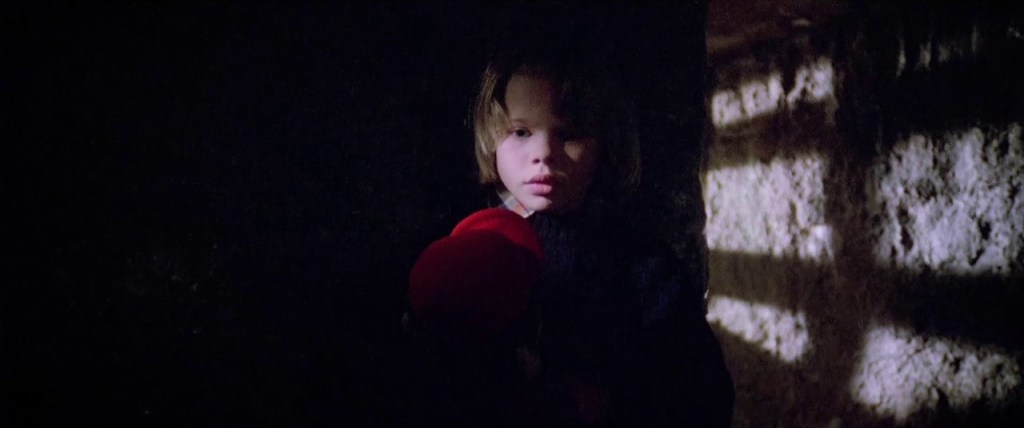 La maison près du cimetière est un film qui se situe à la croisée de deux courants du cinéma horrifique, à savoir : le gothique dit classique avec son décor de vieille maison sinistre, au plancher qui craque et aux portes qui grincent et le gore organique si cher à Lucio Fulci. Dans ce choix de taquiner deux courants, il y a aussi une envie de surfer sur un modèle qui fonctionne et ce n’est pas le synopsis de cette histoire qui nous fera dire le contraire. Tout est réuni pour nous faire vivre une expérience autour des clichés du genre, mais surtout à un hommage peu subtil à des films comme Amityville ou encore Shining, dont on retrouve quelques similitudes. En effet, Fulci ne s’en cache pas et fait intervenir le modèle classique de la famille américaine dans une maison qui semble dangereuse. On y retrouve alors un père de famille absent par la charge de travail, une mère un peu instable sur les bords et écrasée par son mari, mais surtout un enfant doté de pouvoirs surnaturels, lui permettant de communiquer avec une fillette. Rien de bien original donc, mais tout le pouvoir d’attraction de La maison près du cimetière est à retrouver du côté de son ambiance pleine de noirceur et où l’espoir n’est pas de mise.