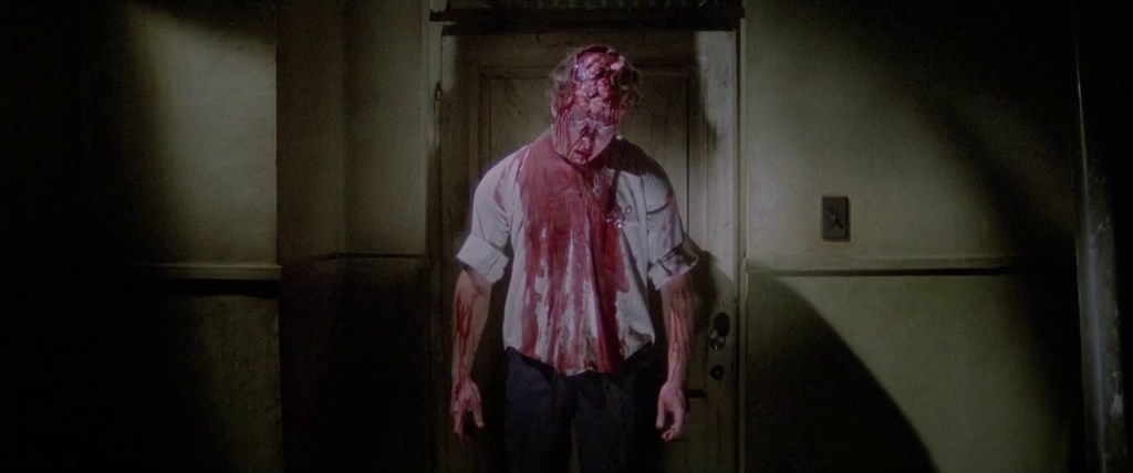 La tension est donc à son comble, accentuée ici et là par des mouvements de caméra assez lents et fluides. La frayeur monte crescendo, l’ambiance est pesante, onirique et Lucio Fulci s’en servira pour faire éclater son récit dans un final qui rompt avec cette lenteur. Le gore, qui avait déjà fait son apparition à quelques reprises dans le long-métrage, sera ici bien plus organique, putride, donnant ainsi toute une symbolique à cette cave inaccessible.