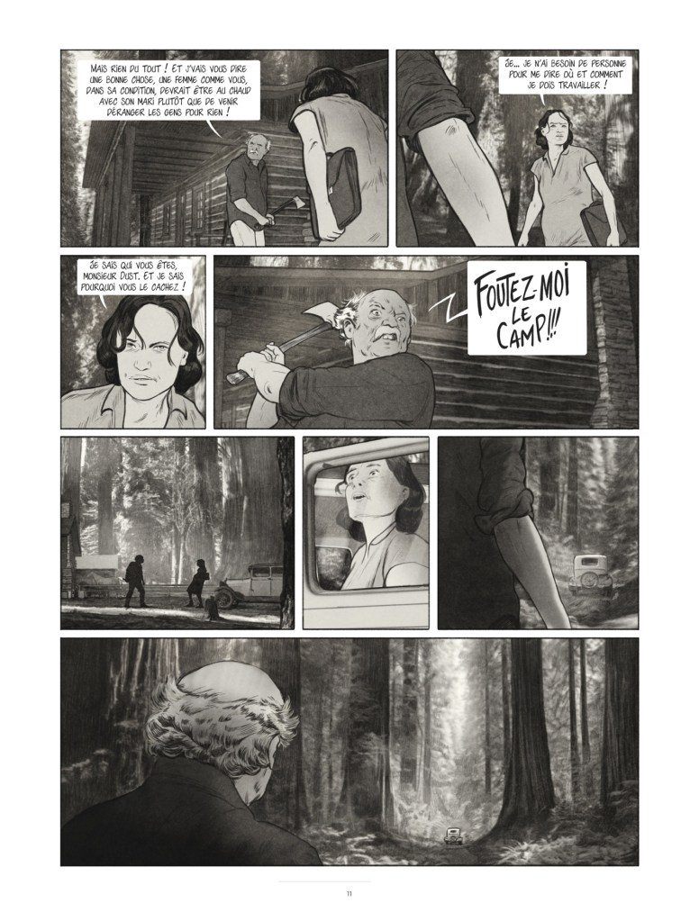 Tout commence par une jeune femme qui tente de retrouver un homme énigmatique qui ne semble pas si facile à débusquer. Et pour cause, celui-ci a changé de nom pour se construire une nouvelle vie, loin des avis de recherches qui sont toujours en cours. La jeune femme est mise en garde, Red Dust n’est pas si facile à approcher. C’est un vrai ours. L’auteur prend ainsi le parti-pris de ne pas nous offrir une simple copie de l’œuvre du scénariste Greg et du dessinateur Hermann, mais bien de nous offrir une vision plus personnelle du personnage, de son évolution dans le temps et de l’ancrer dans une autre décennie.