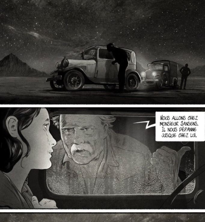 Mais cette reprise de Romain Renard se démarque également par son dessin si particulier, jouant sur des noirs et gris intenses, mais également sur une technique de dessin bien particulière. Celui-ci intègre la photographie dans son processus en redessinant par-dessus, ce qui donne un aspect très réaliste à l’ensemble. C’est ainsi que l’on en vient à passer de nombreuses minutes à contempler chaque case, de rêver d’en posséder quelques-unes et de vouloir nous immerger complètement dans cet univers à la nature hostile. L’auteur et dessinateur réussit parfaitement à nous faire ressentir chaque atmosphère qu’il a voulu mettre en images. On ressent chaque émotion, chaque danger, que ce soit dans les paysages ou dans les regards des personnages qui gravitent dans cette histoire. Revoir Comanche s’offre à nous comme un véritable trésor, une œuvre d’art qui rend hommage à cette époque révolue, qui fait encore rêver certaines personnes et qui semble encore tant de choses à nous offrir.