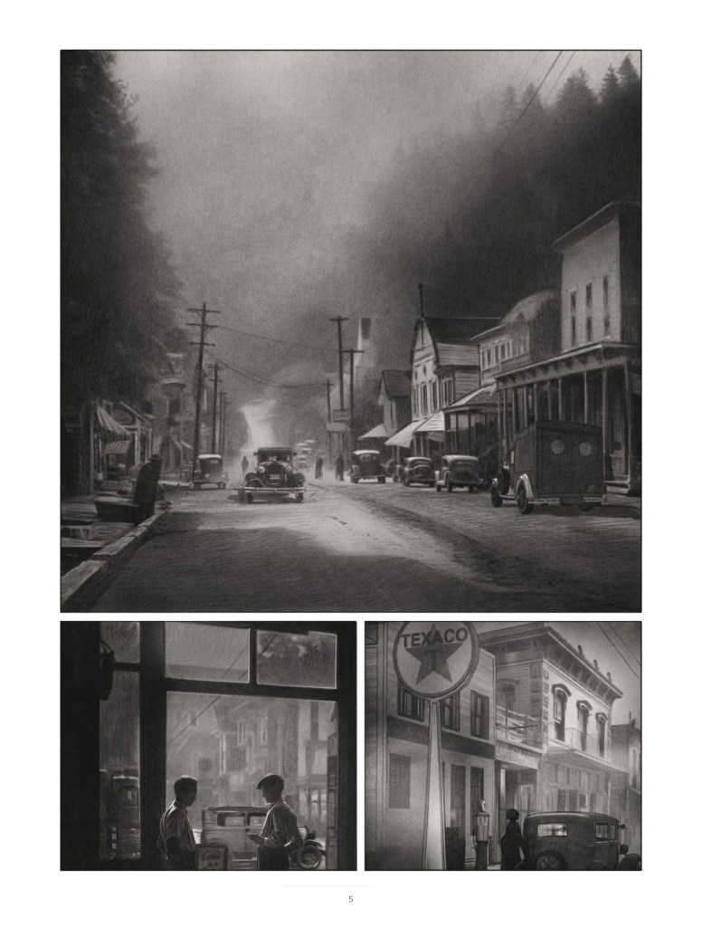 Cette contre-proposition nous offre la possibilité de contempler une Amérique en pleine crise économique au travers du regard d’un Red Dust vieillissant et désabusé. Il contemple son pays et son passé qui se délite petit à petit, qui continue à se déchirer et à se forger dans une violence sans fin envers les autres et surtout les natifs américain. Tout honneur semble avoir disparu de ces terres, tandis que notre personnage semble revivre son passé, ses traumatismes et ses regrets. Avec Revoir Comanche, c’est un véritable road-trip à travers plusieurs États qui nous est offert. On contemple ainsi des endroits désolés, des villes qui semblent parfois vides et on prend plaisir à suivre ce Red Dust qui découvre peu à peu certaines nouvelles technologies. Bien évidemment, Romain Renard nous immerge dans un pays en pleine crise économique, convoquant ainsi l’œuvre de Steinbeck, mais aussi les tempêtes de sable que nous pouvions déjà retrouver dans Jour de sable d’Aimée de Jongh. L’auteur évoque avec brio toute l’imagerie que nous connaissons de cette époque et c’est un véritable bond dans le passé qui nous est proposé.