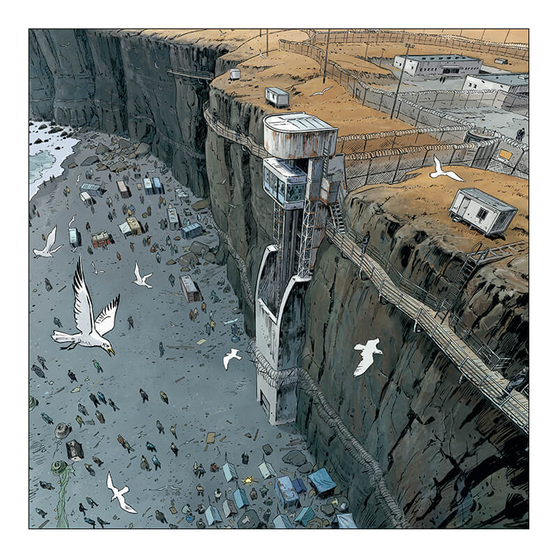 C’est en 2025 que les deux artistes reviennent pour nous offrir un triptyque d’anticipation s’intéressant au sujet des réfugiés climatiques et de toutes les tensions que cela va engendrer. Avec Islander, publié aux Éditions Glénat, Caryl Férey et Corentin Rouge nous offrent une bande dessinée à l’aspect cinématographique et aux questionnements multiples.